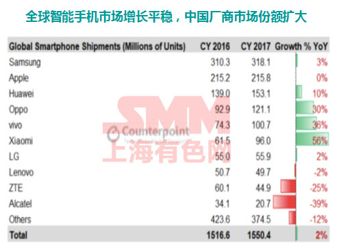 全球智能手機市場增長平穩(wěn),中國廠商市場份額擴大