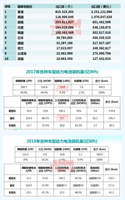 2017年鋰離子電池出口量約為17.11億只,2016年出口量約為15.17億只,與上一年相比,同比增長了12.79%。2017年鋰離子電池出口額約為80.48億美元,2016年出口額約為68.41億美元,同比增長了17.64%。