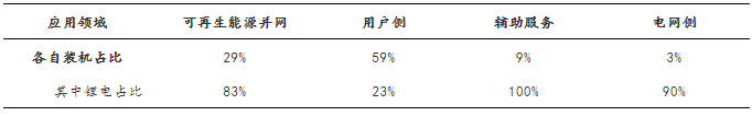 表2:2017年中國電化學儲能在電力四大應用領域裝機占比及鋰電占比