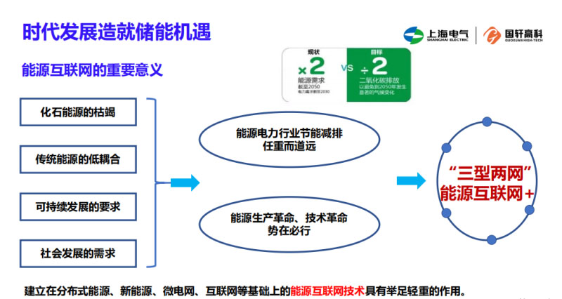 建立分布式能源新能源微電網(wǎng)、互聯(lián)網(wǎng)的能源互聯(lián)網(wǎng)技術具有舉足輕重的地位。浙江華云的老總說的非常好,“三型兩網(wǎng)”國家電網(wǎng)在能源產業(yè)重大的據(jù)測為我們新能源企業(yè)尤其是儲能企業(yè)指出了很好的方向。