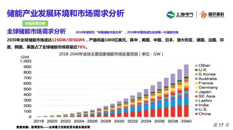 儲能產業(yè)發(fā)展的環(huán)境和市場需求,儲能的技術路線,時間關系我也不多說了。機械儲能、電池儲能、化學儲能,我們做的就是鋰離子電池儲能技術。