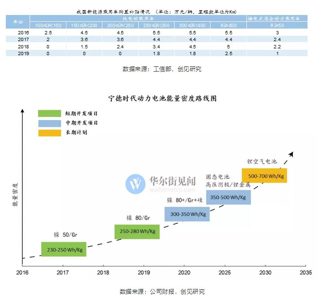 雖然政策對外資電池廠入華競爭的隔絕客觀存在,但不同于以“騙補”為出發(fā)點的低端玩家,寧德時代扎實的研發(fā)功底,仍使其在政策補貼對能量密度日趨嚴苛的要求中脫穎而出。從公司日前公布的能量密度路線圖看,主打方形電池路線的寧德時代雖在能量密度上仍遜松下一籌,但考慮到不是所有車企都具備特斯拉一般的電控駕馭能力,方形電池更廣的車型適用范圍足以保證寧德時代在能量密度的爬坡階段也能收獲足夠訂單。