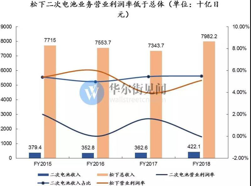 但從產(chǎn)出角度看,能源業(yè)務(wù)旗下二次電池業(yè)務(wù)的KPI完成情況并不理想:在重金投入迅速轉(zhuǎn)化為產(chǎn)能擴張的同時,二次電池業(yè)務(wù)收入占比毫無起色,營業(yè)利潤率也明顯在拖松下后腿。站在松下角度來看,在經(jīng)歷了4年的停滯不前之后,很難不對“4年翻倍”的小目標(biāo)產(chǎn)生懷疑。