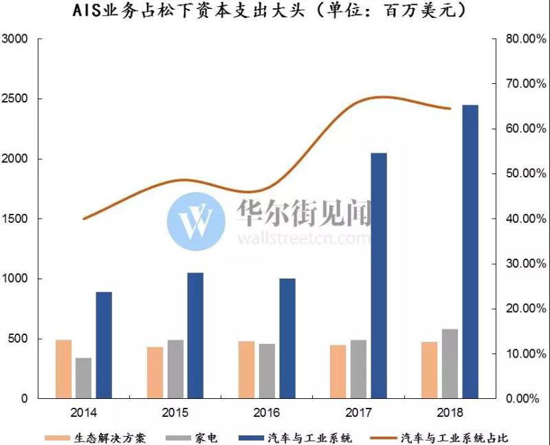 從投入的角度看,松下對AIS業(yè)務(wù)可謂揮金如土。2017年,AIS業(yè)務(wù)資本支出一度接近公司總資本支出的70%;而在去年,AIS系統(tǒng)的資本支出再創(chuàng)新高,這其中的一大部分,以特斯拉超級工廠為代表的固定資產(chǎn)投資與相關(guān)折舊的形式,投向了二次電池隸屬的能源分支。