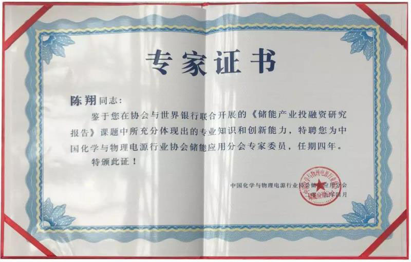 大會期間,億緯鋰能儲能事業(yè)部總經理陳翔先生還收到了來自主辦方的一份特殊禮物。鑒于陳總在協會與世界銀行聯合開展的《儲能產業(yè)投融資研究報告》課題中所充分體現出的專業(yè)知識和創(chuàng)新能力,中國化學與物理電源行業(yè)協會儲能應用分會特聘其為專家委員,任期四年。這是儲能行業(yè)對億緯鋰能及陳總個人莫大的肯定和認可,可喜可賀。