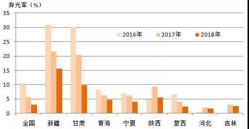 但實(shí)際上對(duì)于棄光率不超過(guò)5%的省份,也可以不考慮或考察其全額保障性收購(gòu)制度的電量收購(gòu)情況,更為重要的是能否保價(jià)收購(gòu)。2018年棄光率超過(guò)5%的省份僅為新疆和甘肅,年等效利用小時(shí)數(shù)分別為1264、1337,同比分別上升60、214。