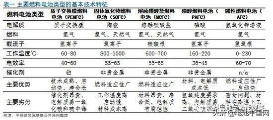 燃料電池(Fuel cell)是一種主要通過氧或其他氧化劑進(jìn)行氧化還原反應(yīng),把燃料中的化學(xué)能轉(zhuǎn)換成電能的發(fā)電裝置。最常見的燃料為氫,其他燃料來源來自于任何的能分解出氫氣的碳?xì)浠衔铮缣烊粴?、醇、和甲烷等。燃料電池有別于原電池,優(yōu)點在于透過穩(wěn)定供應(yīng)氧和燃料來源,即可持續(xù)不間斷的提供穩(wěn)定電力,直至燃料耗盡,不像一般非充電電池一樣用完就丟棄,也不像充電電池一樣,用完須繼續(xù)充電。主要燃料電池類型的技術(shù)特征見表一: