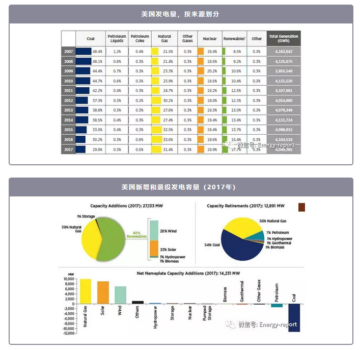 2017年可再生能源占美國(guó)新增電力裝機(jī)容量的60%,而2016年對(duì)應(yīng)的值為67%。燃煤發(fā)電占2017年退役裝機(jī)的54%(6.9GW)。