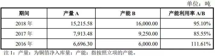 圖為嘉元科技報(bào)告內(nèi)產(chǎn)能利用率情況