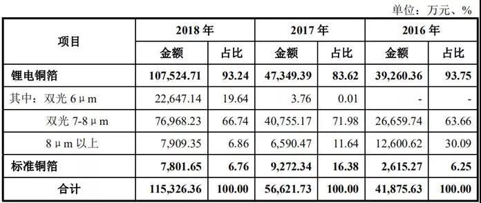 嘉元科技主要產(chǎn)品為超薄鋰電銅箔和極薄鋰電銅箔,主要應(yīng)用于鋰離子電池行業(yè),最終應(yīng)用在新能源汽車動(dòng)力電池、儲(chǔ)能設(shè)備及電子產(chǎn)品等領(lǐng)域。招股書顯示,2016年至2018年,嘉元科技實(shí)現(xiàn)營(yíng)業(yè)收入分別為4.19億元、5.67億元、11.53億元人民幣,實(shí)現(xiàn)歸母凈利潤(rùn)分別為0.63億元、0.85億元和1.76億元人民幣。