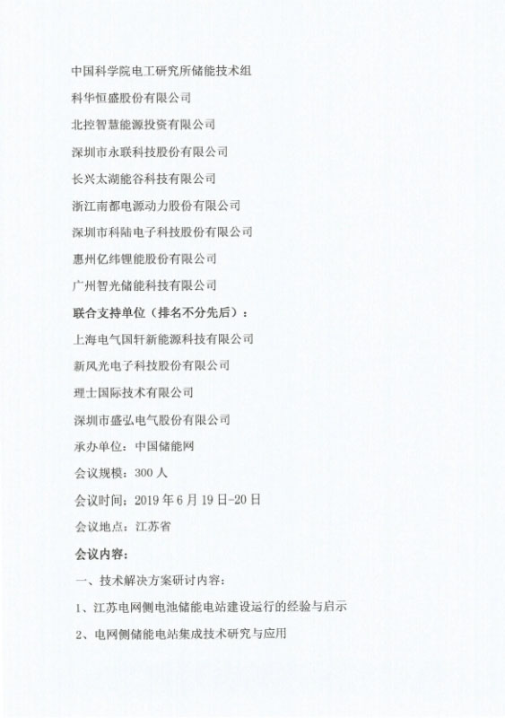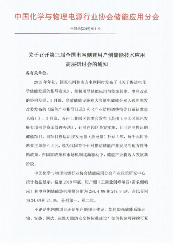 關(guān)于召開第三屆全國電網(wǎng)側(cè)暨用戶側(cè)儲(chǔ)能技術(shù)應(yīng)用高層研討會(huì)的通知