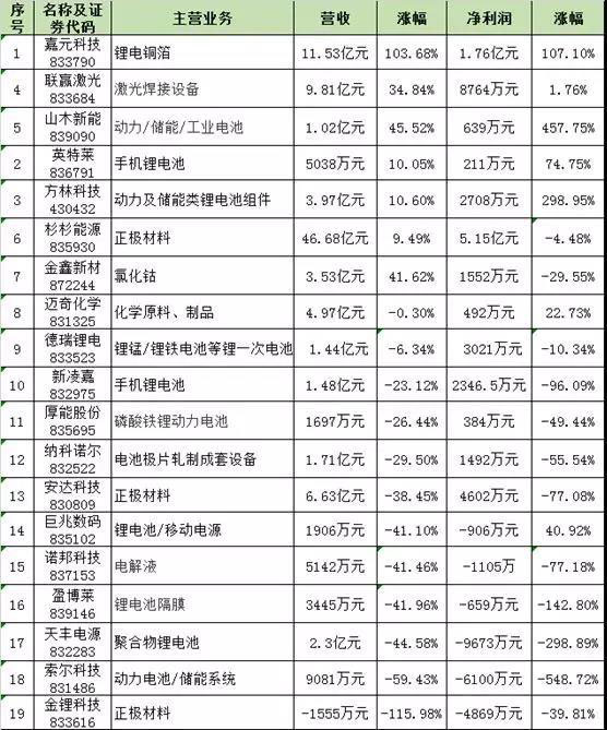 據(jù)高工鋰電統(tǒng)計(jì)了目前發(fā)布2018年業(yè)績報(bào)告的19家新三板企業(yè)發(fā)現(xiàn),營收凈利雙豐收的企業(yè)只有嘉元科技、聯(lián)贏激光、英特萊和方林科技等5家,德瑞鋰電、新凌嘉、厚能股份等11家企業(yè)營收凈利雙雙下滑,金鋰科技、天豐電源、盈博萊6家企業(yè)甚至凈利虧損,12家企業(yè)營收過億。