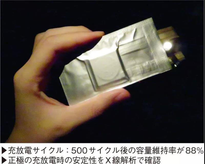 例如,由日本電氣硝子,產(chǎn)業(yè)技術(shù)綜合研究所,長(zhǎng)岡技術(shù)科技大學(xué)等共同開(kāi)發(fā)的Na離子二次電池。在過(guò)去的一年里,已經(jīng)從硬幣型的電池發(fā)展稱(chēng)手掌大小的層壓電池。循環(huán)壽命也是500次循環(huán),容量保持率為88%,這是消費(fèi)產(chǎn)品級(jí)的使用水平,日本電氣硝子表示:“2025年大規(guī)模生產(chǎn)電動(dòng)汽車(chē)使用的電池計(jì)劃進(jìn)展順離”。