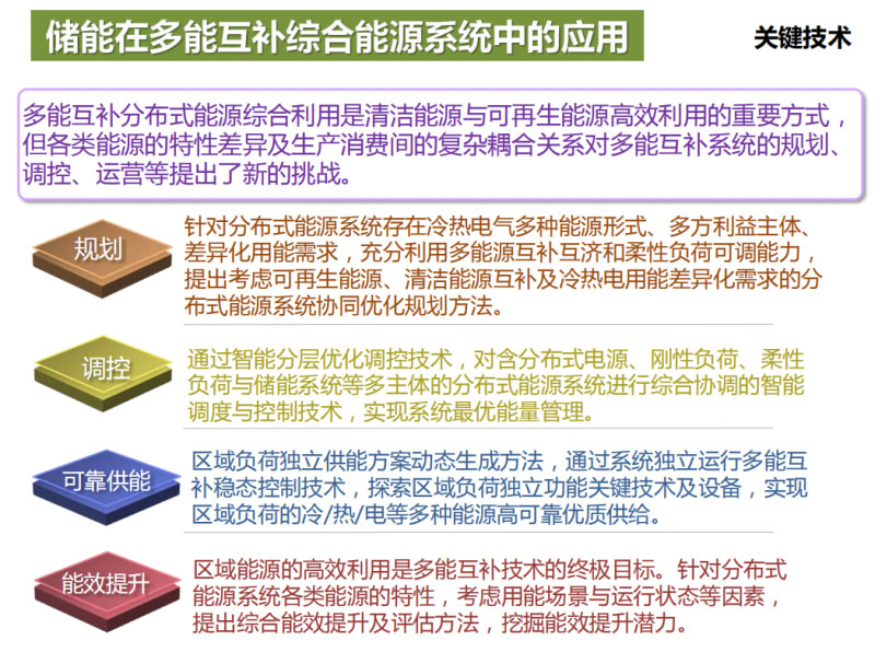另外一個(gè),即插即用的分布式能源智能測(cè)控技術(shù),結(jié)合泛在電力物聯(lián)網(wǎng)的應(yīng)用,還有現(xiàn)在搞的能量路由器,光、儲(chǔ)、充一體化的電站技術(shù),冷熱電聯(lián)儲(chǔ)的技術(shù),這些技術(shù)的應(yīng)用在綜合能源系統(tǒng)把電的儲(chǔ)能和熱、冷的儲(chǔ)存結(jié)合起來(lái)、耦合起來(lái),來(lái)實(shí)現(xiàn)一個(gè)能源利用的最大化。