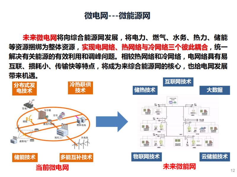 國(guó)家我們講微電網(wǎng),國(guó)家電網(wǎng)角度來(lái)講,我們認(rèn)為微電網(wǎng)是分布式能源消納和吸收重要的方式,當(dāng)然現(xiàn)在微電網(wǎng)的實(shí)現(xiàn)大多數(shù)都在邊遠(yuǎn)地區(qū)就是用電薄弱地區(qū)來(lái)去推廣和應(yīng)用,現(xiàn)在關(guān)于微電網(wǎng)的技術(shù)方方面面信息也比較多,我們認(rèn)為微電網(wǎng)最終要向微能源網(wǎng)發(fā)展,不僅僅是電量的平衡,局部區(qū)域里面建設(shè)微電網(wǎng)的同時(shí)還詘要考慮冷和熱就是能源的生態(tài)需求,把電和冷熱其他的能源綜合起來(lái)考慮,特別是把分布式能源,冷熱電聯(lián)供技術(shù)、儲(chǔ)能技術(shù)、多能互補(bǔ)技術(shù)結(jié)合泛在電力物聯(lián)網(wǎng)的理念,共同來(lái)打造能源互聯(lián)網(wǎng)一種新的生態(tài),這樣的項(xiàng)目往這個(gè)方向去嚴(yán)謹(jǐn)?shù)模粌H僅是一個(gè)技術(shù)的嚴(yán)謹(jǐn),還是商業(yè)模式的嚴(yán)謹(jǐn),這樣在一些工業(yè)園區(qū),有很多很多的場(chǎng)景,后面會(huì)有一些介紹。這里面重要的增加能效、降低用戶側(cè)的成本,這個(gè)領(lǐng)域商業(yè)機(jī)會(huì)越來(lái)越多。