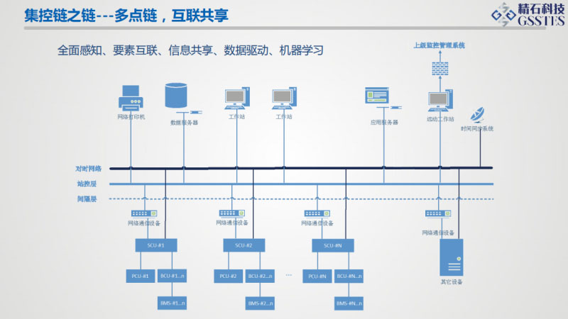 鏈指的是多點(diǎn)鏈、互聯(lián)共享。數(shù)據(jù)要互聯(lián)互通,高效多樣的數(shù)據(jù)傳輸,也是為泛在電力物聯(lián)網(wǎng)打下基礎(chǔ),使它能夠完成全面感知、要素互聯(lián)、信息共享、數(shù)據(jù)驅(qū)動(dòng)以及機(jī)械學(xué)習(xí)的一些功能。我們的集控鏈在BMS的應(yīng)用防護(hù)之外增加了智能管控和多維度智能充放電,它的目的也是使儲(chǔ)能系統(tǒng)更加安全。