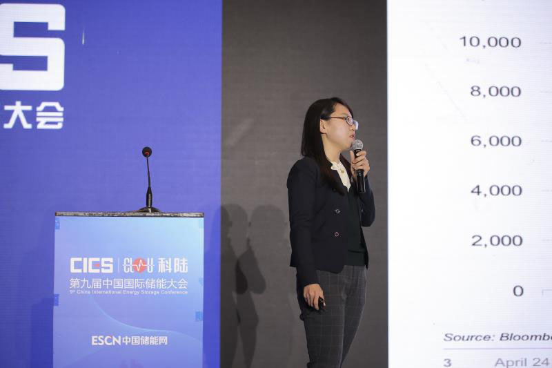 中國儲能網(wǎng)訊:4月24-26日,由中國化學(xué)與物理電源行業(yè)協(xié)會儲能應(yīng)用分會主辦的第九屆中國國際儲能大會在浙江省杭州市洲際酒店召開。在4月24日下午的“儲能電站與技術(shù)應(yīng)用(一)專場”,彭博新能源財經(jīng)儲能行業(yè)分析師李岱昕在會上分享了主題報告《全球儲能市場發(fā)展趨勢及典型項目案例分析》,以下為演講實錄: