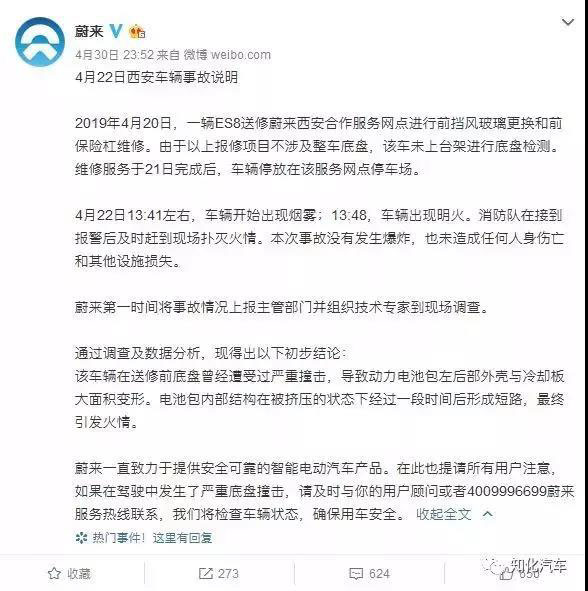蔚來對此次起火的官方聲明很快發(fā)布: