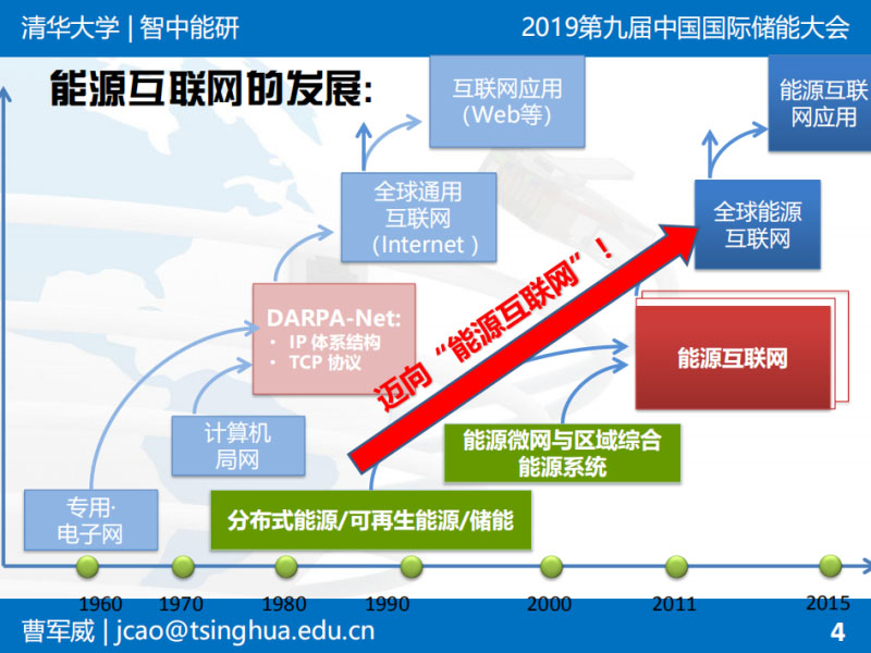 中國儲能網(wǎng)訊:4月24-26日,由中國化學與物理電源行業(yè)協(xié)會儲能應(yīng)用分會主辦的第九屆中國國際儲能大會在浙江省杭州市洲際酒店召開。在4月24日下午的“綜合能源服務(wù)專場”,清華大學信息技術(shù)研究院副院長曹軍威在會上分享了主題報告《能源路由器在綜合能源系統(tǒng)中的應(yīng)用》,以下為演講實錄: