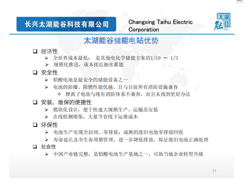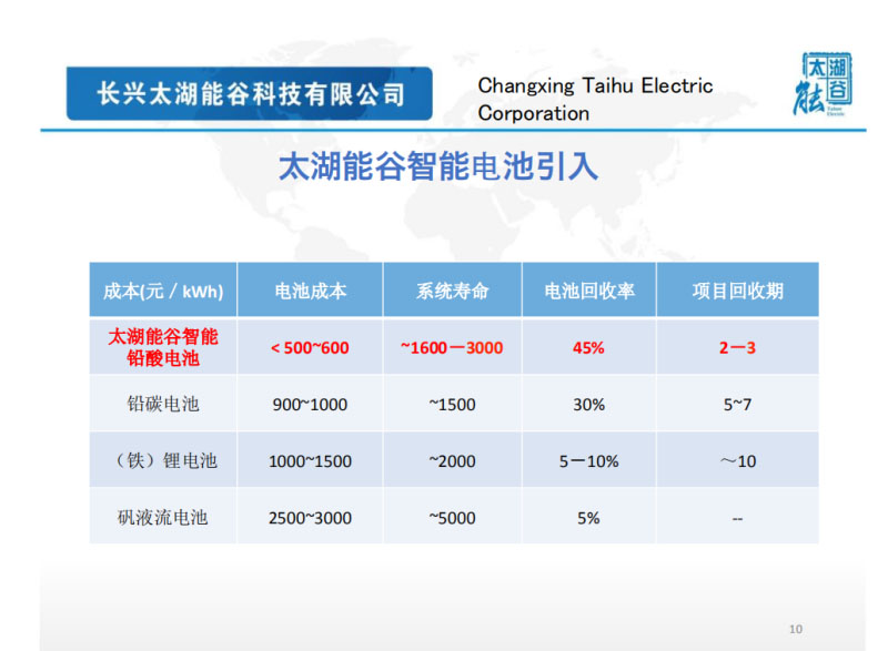 最好的是水庫儲能,但不是到處可用,電化學儲能有它的優(yōu)勢。現(xiàn)在大家走的比較快,鉛酸和鋰電池繼續(xù)在做。比較了鉛酸電池和鋰電池的特點以后,覺得目前選鉛酸電池是一個很好的技術(shù)路徑。主要是兩個部分,一個部分在它的安全性,鉛酸電池安全消防是比較好的,還有可回收性,現(xiàn)在鉛酸電池已經(jīng)做到了99.8%,鋰電池還需繼續(xù)努力。鉛酸電池固然有一個缺點,就是壽命短些,鉛酸電池的壽命短也不完全是電池的緣故,跟我們的使用環(huán)節(jié)非常有關(guān)系,所以我們作為第一個應用,太湖能谷集中精力攻中國的AGM鉛酸電池,即電動自行車上用的電池,延長這種電池壽命以后發(fā)現(xiàn)儲能性價比得到了很大的改善。