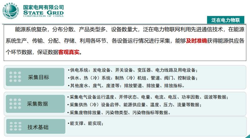 能源管理盲點問題包含幾個方面。評估手段不足、技術(shù)手段落后、監(jiān)測覆蓋面小、監(jiān)測嚴重不足、能源大數(shù)據(jù)分析不足。國網(wǎng)公司提出三型兩網(wǎng)和世界一流之后對我們自身也存在一個痛點問題,就是我們綜合能源業(yè)務支撐能力也是逐步提升的。很少有一家企業(yè)或者一個研究機構(gòu)能把這么一種業(yè)務說得清清楚楚,明明白白的。提出泛在電力物聯(lián)網(wǎng),這是國網(wǎng)公司的一個改變,一個態(tài)度,一個歷史擔當和一個使命所托。第三次工業(yè)革命,它的標志性事件就是可再生能源與互聯(lián)網(wǎng)的融合。到了今天這個階段,國網(wǎng)公司必須站在歷史潮流上提出一個泛在電力物聯(lián)網(wǎng)三型兩網(wǎng)的概念。
