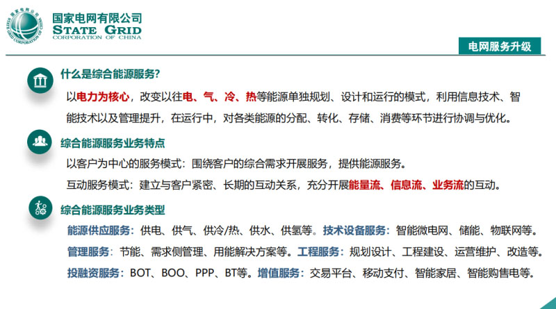 基于此,我們提出了這么一個泛在電力物聯(lián)網(wǎng)下的綜合能源服務,契合了很多場景。場景從哪里來?泛在電力物聯(lián)網(wǎng)既然是第三次工業(yè)革命標志性的事件或者是三型兩網(wǎng)的基礎(chǔ)設(shè)施,這就有一個生態(tài)環(huán)境的問題。首先要想解決環(huán)境的問題,煤炭的消耗量必須下來。首先滿足了一個綠水青山就是金山銀山的生態(tài)文明發(fā)展理念。其次在能源消費革命當中,最具全局性的能源消費環(huán)節(jié)就是電力消費。泛在電力物聯(lián)網(wǎng),需要能量流、信息流、業(yè)務流的融合發(fā)展,第一個帶來的產(chǎn)業(yè)支撐,通訊產(chǎn)業(yè)、5G 的商用場景,還有就是半導體產(chǎn)業(yè)的支撐,其中泛在電力物聯(lián)網(wǎng)的海量數(shù)據(jù)對邊緣計算需求。泛在電力物聯(lián)網(wǎng)的發(fā)展,就是儲能和綜合能源業(yè)務特別好的契合點。儲能在哪兒?儲能只有和綜合能源服務綁在一起才能走出一條不依托于政府政策支持,它才可能是一條可持續(xù)發(fā)展的道路。剛才談到了它會對整個能源消耗有巨大的支撐,必須構(gòu)建綜合能源服務體系,才有可能走得更遠一些。講到綜合能源服務,它的痛點和盲點究竟在哪兒。比如說,很多增加的能源成本是怎么控制?很多企業(yè)可能能源成本不太關(guān)心。生產(chǎn)用了多少,浪費了多少,現(xiàn)有的能源計量能不能滿足費用結(jié)算。還有很多企業(yè)認為已經(jīng)有了一個很精細化的管理,是否還有進一步的節(jié)能降耗的空間。怎么節(jié),節(jié)哪里,節(jié)多少,是否能實現(xiàn)能源精細化管理。企業(yè)設(shè)備不壞不修不換,企業(yè)這個設(shè)備基本上倉庫里常見的已有的設(shè)備之外還有備品,它沒有足夠時間去應對設(shè)備損壞帶來的問題。每年總是有幾次事故,不知道什么原因。設(shè)備安全問題、健康狀態(tài)都可能帶來工作運行狀態(tài)監(jiān)測不到位的問題。
