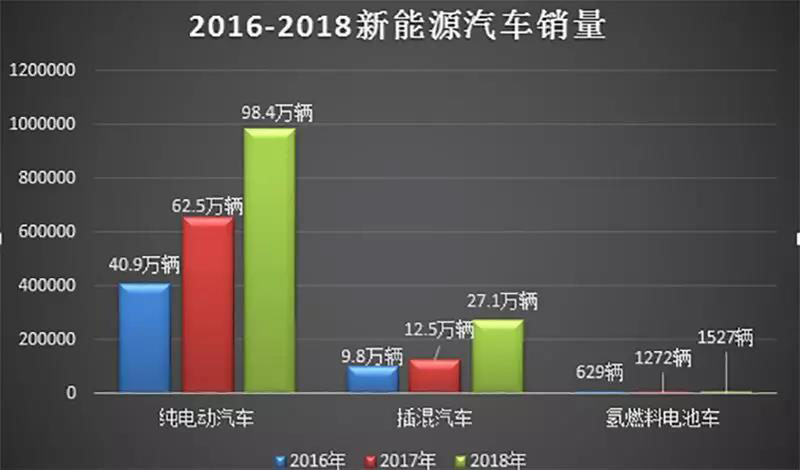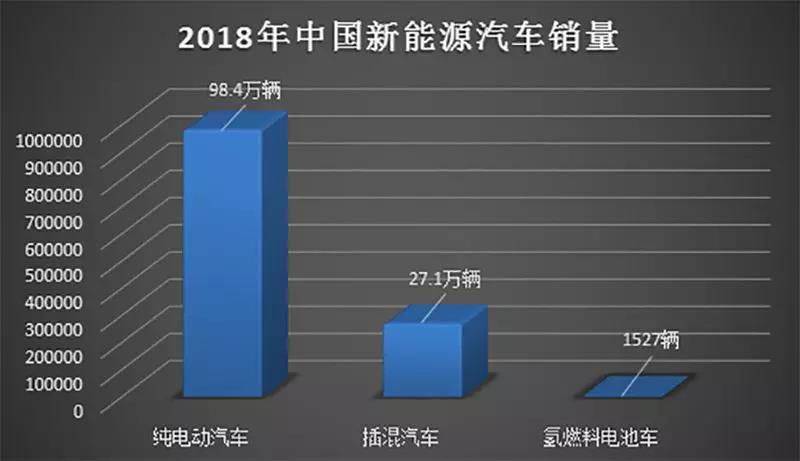 在新能源車內(nèi)部相比,2018年中國新能源汽車總銷量達125.6萬輛,其中純電動汽車98.4萬輛,插混汽車27.1萬輛,氫燃料電池汽車占比不足0.12%,可謂是慘不忍睹。