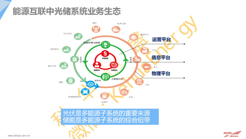曾春保:各位領(lǐng)導(dǎo)、各位專家,大家上午好!我在這里代表科華恒盛做《能源互聯(lián)網(wǎng)當(dāng)中光儲(chǔ)探討和解決方案》的專題報(bào)告。主要從這么幾個(gè)方面來(lái)跟大家探討。第一部分是對(duì)于光儲(chǔ)系統(tǒng)的業(yè)務(wù)生態(tài)的理解。最右邊那個(gè)圖是一個(gè)我們的綜合能流圖。光伏有分布式的,包括一些大型的電站,通過(guò)一些變電站,最終到我們的需求側(cè),也就是負(fù)荷,負(fù)荷的話包括了電動(dòng)汽車充電、數(shù)據(jù)中心等等,這些綜合的一個(gè)能流,那其中我們把它轉(zhuǎn)換成我們的一個(gè)應(yīng)用場(chǎng)景。那應(yīng)用場(chǎng)景的話,科華恒盛這邊的理解就是把發(fā)電、配電轉(zhuǎn)到具體的應(yīng)用領(lǐng)域,包括工業(yè)、金融、軌道交通等場(chǎng)合。這邊的話今天主要講光儲(chǔ),那光伏是整個(gè)多能源里面重要的能源的來(lái)源。