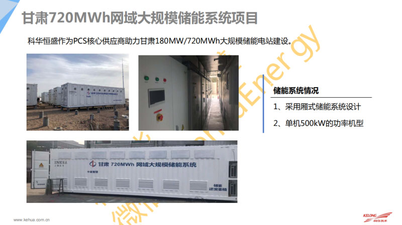 這是電網(wǎng)側(cè)的儲(chǔ)能,河南電網(wǎng)100MW儲(chǔ)能項(xiàng)目,目前已經(jīng)投運(yùn)了。這邊是甘肅720MWh網(wǎng)域大規(guī)模儲(chǔ)能系統(tǒng)項(xiàng)目,這邊的PCS也是必須具備前面說(shuō)到的功能,所有的功能可以實(shí)現(xiàn)并級(jí)。這是湖南電網(wǎng)長(zhǎng)沙一期60MW儲(chǔ)能項(xiàng)目,這種也是要具備相關(guān)的電網(wǎng)側(cè)的調(diào)度。還有這邊是一個(gè)明陽(yáng)大慶風(fēng)電廠風(fēng)電側(cè)的儲(chǔ)能應(yīng)用,也是在零下35度極寒天氣的應(yīng)用。