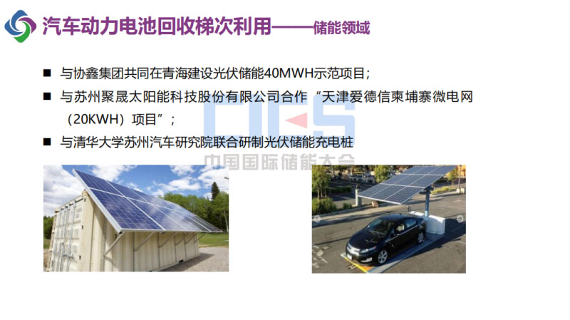 這是我們開(kāi)展梯次利用的路線圖,包括前面的回收、研發(fā)的合作、研發(fā)過(guò)程中、市場(chǎng)銷售、材料回收,通過(guò)我們電商體系甚至檢測(cè)認(rèn)證體系,把整個(gè)產(chǎn)業(yè)鏈串起來(lái)。