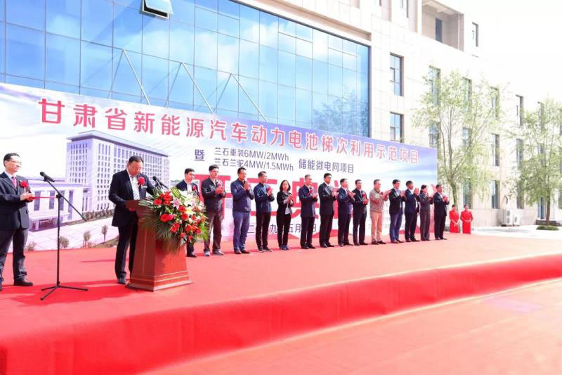 甘肅省工信廳副廳長程學(xué)欽宣布甘肅省新能源汽車動力電池梯次利用示范項(xiàng)目暨蘭石重裝和蘭石蘭駝儲能微電網(wǎng)項(xiàng)目正式開工。