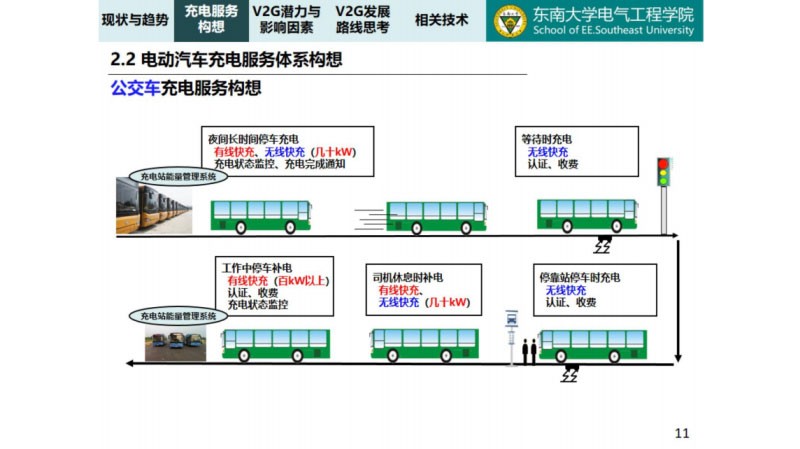 對(duì)于公交車我們認(rèn)為夜間有線快充充滿電,公交車等待時(shí)候的充電也提到了一個(gè)就是無(wú)線的快充,還有就是停靠站時(shí)候的充電,一路過(guò)去大概25個(gè)站,每個(gè)站大概停一分鐘,這25分鐘可以給它一個(gè)無(wú)線的快充,給它補(bǔ)電。還有司機(jī)休息的時(shí)候,還有就是工作當(dāng)中的停車補(bǔ)電,那個(gè)也是有線快充,大概在30千瓦到50千瓦,這是對(duì)于公交車。對(duì)于出租車滴滴等這些高頻出行的車輛,我們覺得肯定還是它的換電模式,肯定就是起作用的,因?yàn)樗菚r(shí)間最寶貴的,開車也是的,就是讓出租車過(guò)來(lái)讓讓它,它的工作時(shí)間,時(shí)間就是金錢,也一樣的,我們認(rèn)為換電模式,快充模式,慢充模式,不管怎么樣都是要讓出租車可以讓它快速的補(bǔ)滿電。