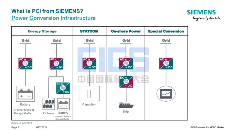 首先我介紹一下西門子的PCS的整體狀況??匆幌滤w的運(yùn)作和功能。第二部分就是基于整體的案例分析和整體的布局。西門子的PCS不僅是基于相關(guān)的應(yīng)用,包括我們一些具體的要求,包括對(duì)于各種能源結(jié)合的需求。包括電池的相關(guān)需求,還有一些鉛碳的電池需求都需要滿足。包括水能或者光能儲(chǔ)備的需求,我們也可以把不同的相關(guān)能源源頭結(jié)合在一起。我們可以用AC和DC的電流,基于AC和DC,就可以建立一個(gè)高效率高表現(xiàn)的系統(tǒng)。直接可以聯(lián)系到我們的電網(wǎng)中。