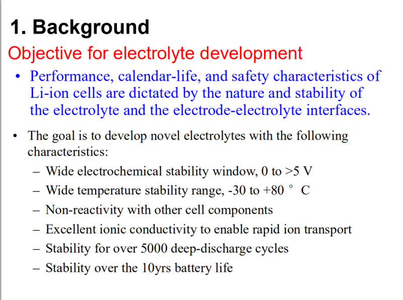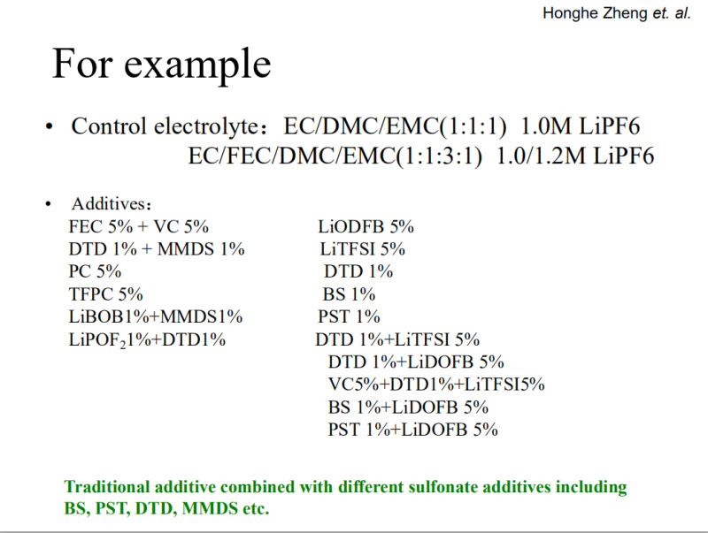 最后的結論就是,電解液還是需要發(fā)展,這個發(fā)展,一方面有添加劑的功勞,但是我一直認為,主體溶劑還是要革新、還是要革命,這方面我們也做了一些工作,今天我們主要是匯報添加劑這塊。