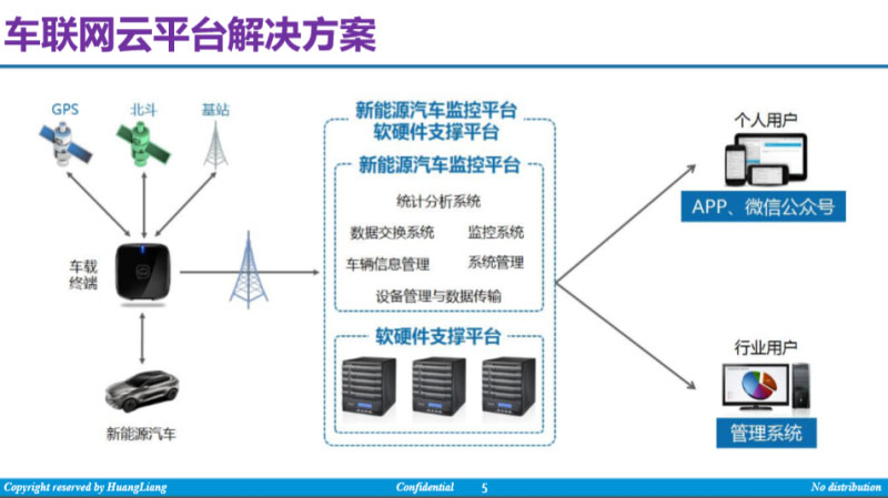 首先是數(shù)據(jù)采集這一塊,我們研發(fā)一系列的數(shù)據(jù)采集與移動終端,包括這個無線的收發(fā)模塊,用于充電樁到車用TBOX。給大家看一下我們目前的接入解決方案,這是一個典型的燃料電池汽車動力系統(tǒng)的遠(yuǎn)程接入,燃料電池動力系統(tǒng)包括燃料電池發(fā)電系統(tǒng)、DC/DC、電機(jī)、鋰電池及管理系統(tǒng)等,它們與整車控制器通過這個動力總成CAN總線來通信。我們的數(shù)據(jù)采集與移動終端監(jiān)控這個動力總成CAN總線信息,再把它通過4G發(fā)送到云平臺去。這一塊來說涉及到兩個協(xié)議的問題,一個是動力總成CAN協(xié)議的問題,還有終端與云平臺之間協(xié)議問題。目前終端與云平臺之間協(xié)議是基于國標(biāo),但是國標(biāo)主要針對電動汽車,協(xié)議里只含有少量的燃料電池的數(shù)據(jù),我們目前在國標(biāo)的基礎(chǔ)上把它的格式做了一些擴(kuò)展,專用于燃料電池汽車。