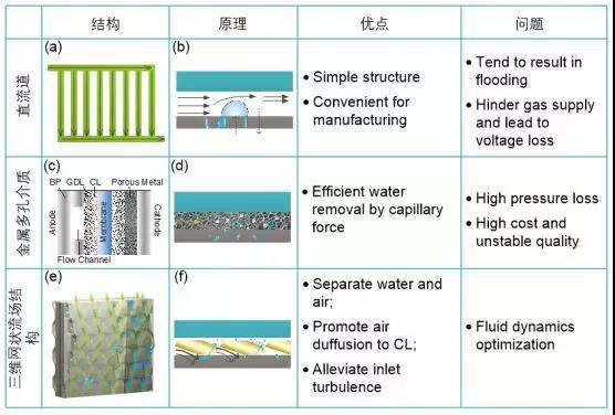 圖4. 三維網(wǎng)狀流場結(jié)構(gòu)示意圖及其與其它結(jié)構(gòu)的比較