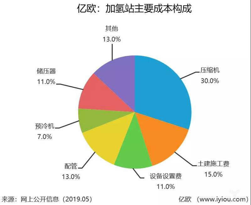 現(xiàn)階段,加氫站建設(shè)最大的“攔路虎”就是成本問題,以加氫站設(shè)備為例,僅加氫壓縮機(jī)就占到30%的成本,目前我國一個(gè)日加氫能力為200kg的加氫站成本在1000萬元左右。即便有政府補(bǔ)助,也難以掩飾一座加氫站高昂的建造和運(yùn)營成本的事實(shí)。