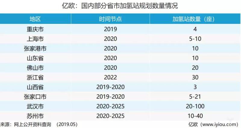 億歐:國內(nèi)部分省市加氫站規(guī)劃數(shù)量情況