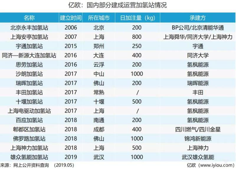 億歐:國內(nèi)部分建成運(yùn)營加氫站情況