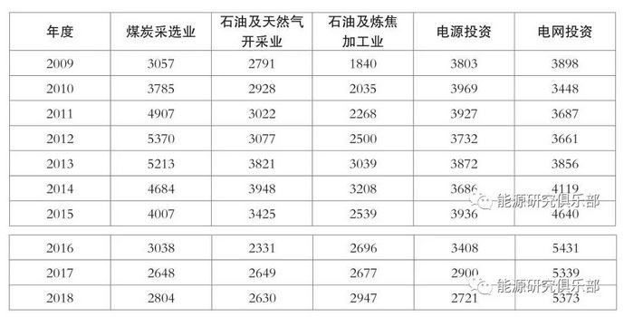 表1-6?2009~2018年能源行業(yè)固定資產(chǎn)投資(不含農(nóng)戶,單位:億元)