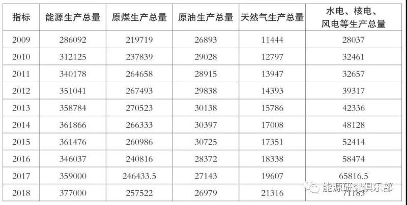 從近十年能源生產(chǎn)數(shù)據(jù)看,能源生產(chǎn)總量經(jīng)歷持續(xù)增長(zhǎng)后2016年轉(zhuǎn)頭下降,最近兩年又出現(xiàn)上揚(yáng)。分品種看,原煤產(chǎn)量在2014年開始出現(xiàn)下降,2016年達(dá)到較低數(shù)值,最近兩年同樣出現(xiàn)回升。原油產(chǎn)量2016年出現(xiàn)大幅下滑跌破3億噸標(biāo)準(zhǔn)煤,2017、2018年繼續(xù)下滑,但2018年降幅收窄。天然氣勘探開發(fā)力度不斷加大,日產(chǎn)氣量連創(chuàng)新高,生產(chǎn)總量持續(xù)提升。水電、核電、風(fēng)電也在延續(xù)持續(xù)增長(zhǎng)勢(shì)頭。
