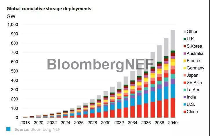 至2040年,全球儲(chǔ)能項(xiàng)目累計(jì)裝機(jī)規(guī)模將達(dá)942GW/2,857GWh