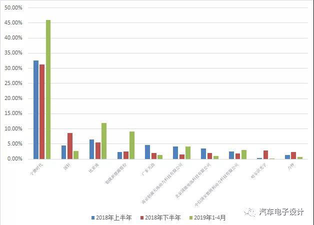 之前普萊德發(fā)生了很戲劇性的事情,其實(shí)也是折射出從2017年到現(xiàn)在整個(gè)電池系統(tǒng)的設(shè)計(jì)、制造,這里面有著很大的變化和發(fā)展。我想把2018年上半年、下半年還有2019年的1-4月份的一些數(shù)據(jù)拿出來仔細(xì)看一下,來判斷一下未來的發(fā)展。