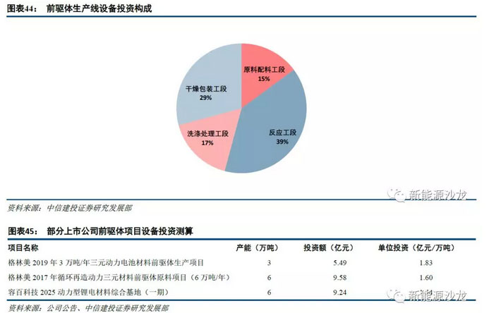 廣東邦普(寧德時(shí)代):2015年寧德時(shí)代通過51%股權(quán)比例控股子公司寧德和盛以股權(quán)受讓及增資方式收購廣東邦普66.72%股權(quán),并利用廣東邦普開展動(dòng)力電池回收循環(huán)再造業(yè)務(wù)。廣東邦普三水廠區(qū)研發(fā)基地主要從事前驅(qū)體材料中試、電池正極材料中試、電池電性能檢測(cè)、理化分析等;長沙寧鄉(xiāng)現(xiàn)有三元前驅(qū)體產(chǎn)能13150噸,2017年3月湖南邦普五期項(xiàng)目開工,建設(shè)三元前驅(qū)體產(chǎn)能3.6萬噸、碳酸鋰產(chǎn)能7000噸以及環(huán)保磚4860萬塊,一期于2018年8月建成,全部項(xiàng)目將于2020年建成。邦普現(xiàn)有加規(guī)劃中產(chǎn)能完全達(dá)產(chǎn)后,預(yù)計(jì)到2020年合計(jì)將形成超過三元正極1.5萬噸,鈷酸鋰正極0.3萬噸,三元前驅(qū)體5萬噸,碳酸鋰1萬噸,氯化鈷0.25萬噸產(chǎn)能。2019年4月25日寧德時(shí)代發(fā)布公告,擬通過廣東邦普全資子公司寧德邦普投資不超過91.3億元,用于建設(shè)年產(chǎn)10萬噸三元正極及10萬噸前驅(qū)體項(xiàng)目,以滿足自身快速增長的正極材料需要。