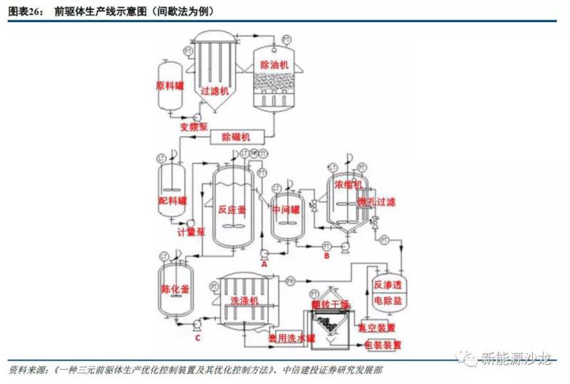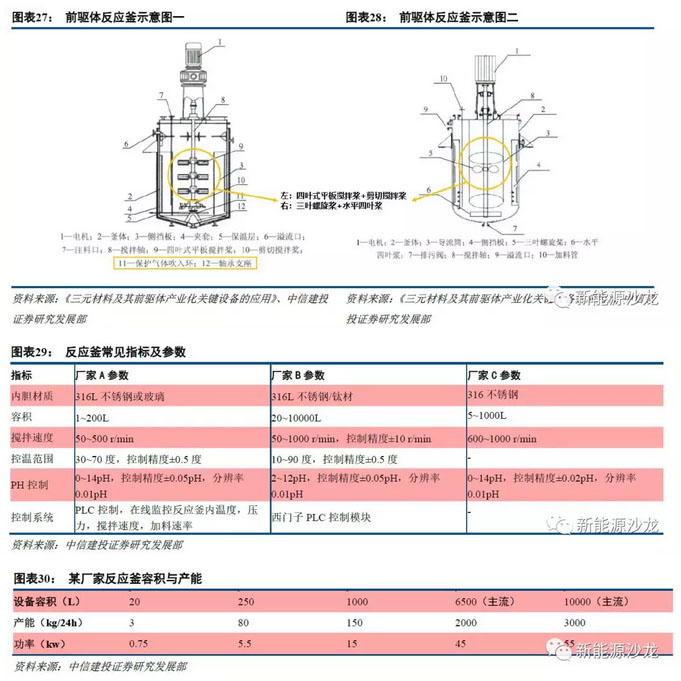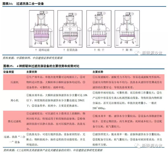 除生產(chǎn)工藝外,三元材料的性能和成本還與關(guān)鍵設(shè)備的選擇有關(guān)。前驅(qū)體的關(guān)鍵設(shè)備包括反應(yīng)釜、過濾和洗滌設(shè)備、干燥設(shè)備等。