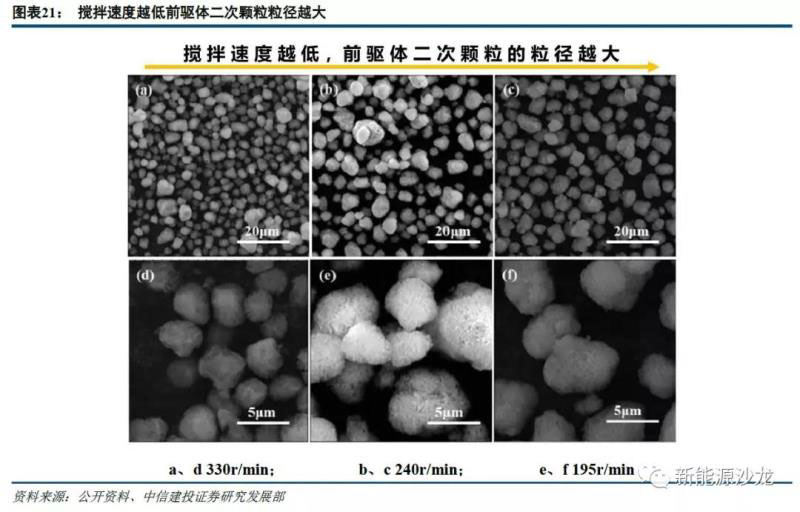 除氨水濃度、PH值、溫度、反應(yīng)氣氛和時(shí)間外,固含量、攪拌速度、流量、雜質(zhì)、生產(chǎn)工藝等也均會(huì)對(duì)前驅(qū)體形貌、理化性能產(chǎn)生直接影響。