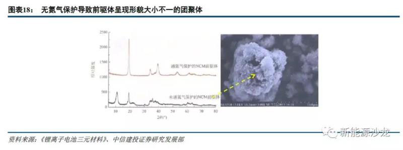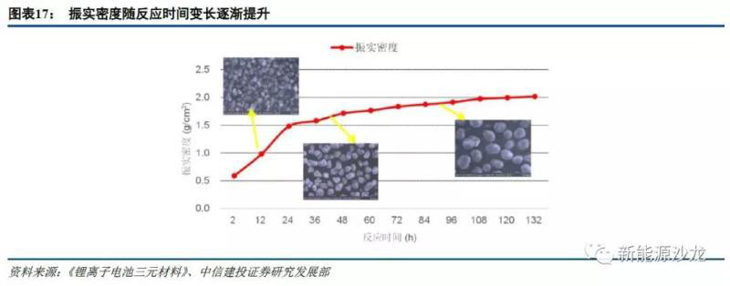 單晶型三元材料對(duì)前驅(qū)體生產(chǎn)工藝提出更高要求。單晶型三元材料除在燒結(jié)工藝需要特殊處理外,對(duì)前驅(qū)體的合成工藝也提出新的挑戰(zhàn)。單晶正極一般選用小顆粒前驅(qū)體,因?yàn)樾☆w粒前驅(qū)體固相反應(yīng)活性更高,更容易生產(chǎn)單晶結(jié)構(gòu),所需燒結(jié)溫度以及燒結(jié)時(shí)間也更短。