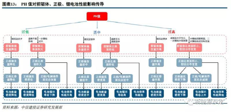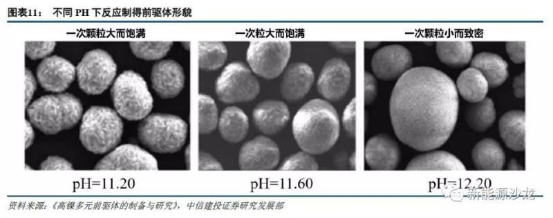 PH值對(duì)前驅(qū)體、正極、鋰電池性能影響傳導(dǎo)主要通過影響元素配比、顆粒形貌:
