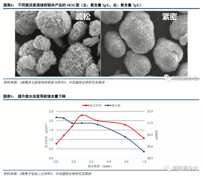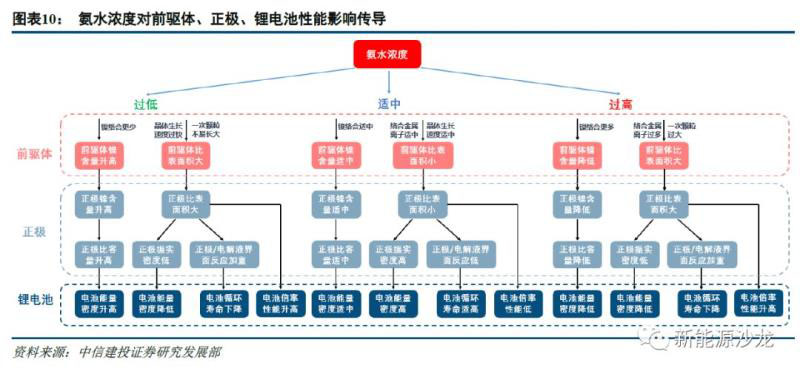 氨水對(duì)前驅(qū)體、正極、鋰電池性能影響傳導(dǎo)主要通過影響元素配比、顆粒形貌: