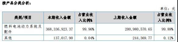 從產(chǎn)品銷(xiāo)售情況來(lái)看,報(bào)告期內(nèi),億華通燃料電池動(dòng)力系統(tǒng)及配件收入占比達(dá)99..96%,是主要收入來(lái)源。
